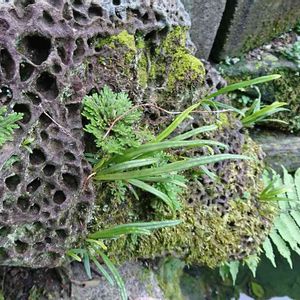 近所を🚶散歩中😱この子は誰 川の石段から張り付いて上がってきてる緑のつる⁉️