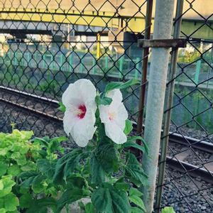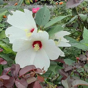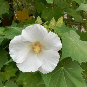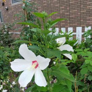 我が家の中央通路沿いの花壇に咲く白色の芙蓉の花です✨