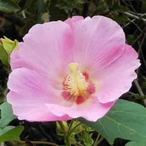 芙蓉 街路樹の下、蕾を見つけて咲くのを楽しみにしていました。今日行ったら咲いていました🎵