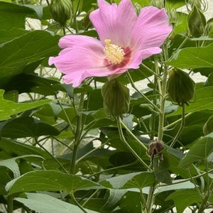 今日のお花 フヨウ 公園で ピンクの可愛いフヨウ🩷咲いてました🌸 朝咲いて 夕方しぼむ 1日花です❀🍀 🫒