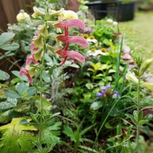 kuro*rigardenでは古株4年目かな?サルビアのアフリカーナ・ルテア❤️消えそうで消えない😆でも殆んど増えない🤣 ラスティセージとソックリさんで本来の名前を忘れたので過去picから探し出すのに苦労しました🤣 花が終わって落ちてもガク?が今の花色のように変化して残るのがまたシャビー感あり素敵なんです✨