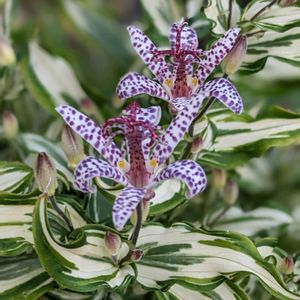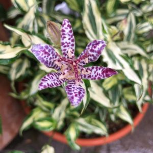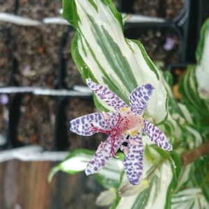 夏の陽気ですが 不如帰が咲きました 斑入りの葉っぱも素敵です 🌱三光斑 ホトトギス サンコウフ ホトトギス 三光斑 不如帰
