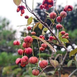 ツリバナの実 面白い植物いっぱいの義実家の庭で。 秋めいて来ましたね〜🍁