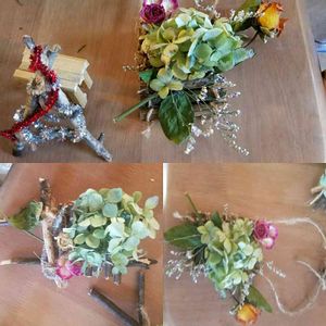 ドライフラワーにしておいたバラ、あじさい、小枝を組んでちょっと遊んでみたよ(*^^*)