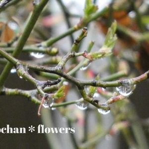 「モッコウバラの小枝」 雨粒が 輝いて✨いました。