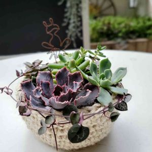 おはようございます♡ やっと首の痛みも無くなって 多肉事を〜🎶と思ったら曇り空…😩 暖かいお日様の下で戯れたいのに😣 先日のフェスの子を1つだけ 寄せ植えにしました🍀 プラポットで可愛くなってた 紅化粧(多分)葉挿しッ子も一緒に💗 麻カゴは過去のミニカゴより 少し大きめ6㎝くらい 極太の麻紐です。 今年のマルシェにどうかな?と 今から試作で使ってみます🤗♫