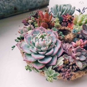 麻ひもで編んだかごに寄せ植えしてみました❤︎.*