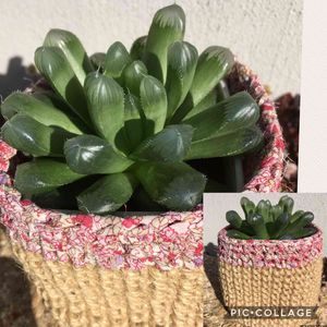 去年の春、大阪で開催されたロハスで購入したお気に入りのハオですが形が乱れてきました💦 手編みの鉢カバーにinしてます😊