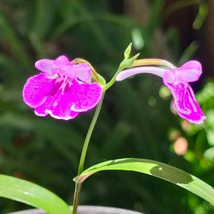 室内管理で冬越しをさせた為 早くから咲き始めたウチョウラン こんなにも濃いピンク色の子も いま➰す♪