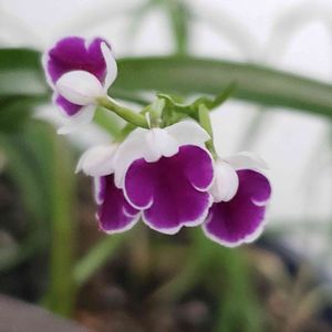 室内管理で冬越しをさせた為 早くから咲き始めたウチョウラン この子は ほぼ紫💜 側裂片に細く入る白色が お気に入りです♪