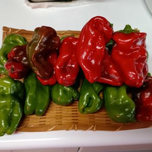 小さいピーマンがたくさん採れました 赤くなってるってことは これ以上大きくならないのよね 採れ初めはでっかいピーマンだったのに どんどんサイズが小さくなって… これは肥料不足なのでしょうか あっ、そうだった 植え付けのときから面倒だなぁと肥料をあげずに育てていたんだった ということで 初肥料を与えておきました👍 2枚目 ピーマンの肉詰めが食べたくなりました 小さいから 詰めるの面倒だなぁと でも大丈夫 『詰めない肉詰め』 本日の昼食となりました😆