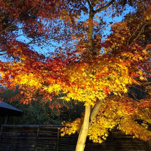 今回の旅の目的 姫路城の隣にある考古園 ライトアップが素晴らしいとのことで初めて訪ねました。 YouTubeでも大混雑の様子どんな素敵なお庭⁉️と期待しました。 明るい内にお庭を堪能段々に暗くなりいつの間にかライトに照らし出された樹木が浮かび上がり昼間とは又違った趣きに大満足で後にしました.🎶( ◠‿◠ ) その時入り口は大行列 私達の時間のコース選びは上手く行ったようでした。👍🎶 感動の紅葉 連続させて頂きます。