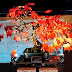 ~ ライトアップイベント✨「秋の夜散歩🚶 2024」⑤ ~ 過去の「秋の夜散歩」のイベントではこの盆栽苑は見学不可でしたが、今回盆栽苑開苑20周年を記念してライトアップされることになりました👏👏👏 昼間の開苑中は何度も入ったことがありますが、夜間は初めてということでかなりテンション上がりました↗️🎶 今日から数日間にわたり2〜32種ずつライトアップされた盆栽を🆙したいと思います🙋 余った枠では日本庭園内で見た素敵な装飾を😉 今日の盆栽は・・・ 1枚目 ハゼ 2枚目 かりん 3枚目 タチマユミ