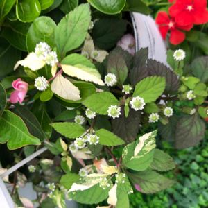 ニチニチソウの隣に咲いている白い花の名前教えて下さい。 ハーブの仲間…としかわかりません。