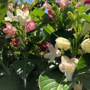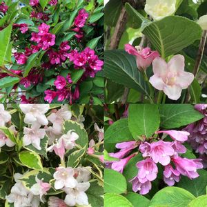 本日の2枚目 5/4にアップした玄関脇のお花、あれから2週間経ってこんなに咲きました🌸 名前不明と言ってたのですが、Weigela Victoriaという英語名であり、ウツギの一種である事が判りました! 以前のアップで「ウツギに似てる」と仰ってた有明の春さん、その通りでした😃 (すご〜い👏) 破茶滅茶に咲いてるようですが、実際はもうちょっとまとまってます😆🌸