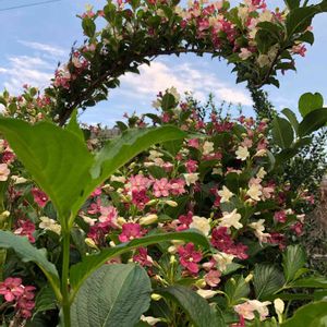 今日出会った草花⑤ このお花好きだな~💕 綺麗なピンク、奥にはアーチが出来てます🌸🌿