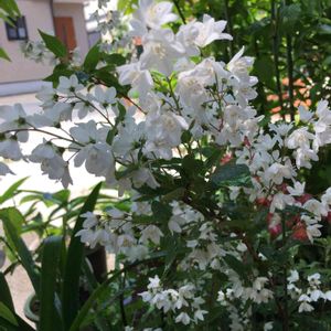 こんにちはー😊お庭の真ん中にあるウツギの花が満開ですー🌱🌼 毎年どんどん大きくなっています。