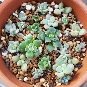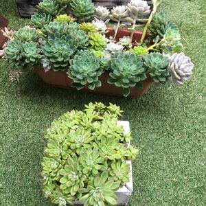 台風が来るのでガーデンシェッドの屋根に置いていた鉢を久しぶりに下ろして見たら葉挿しポイポイプランターと女雛丼がいい感じに^ ^