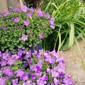昨日の雨でベルフラワーの花が少し傷んでしまった。 3年前から育てていて、 奥の鉢は株分けしたもの。 春になると満開になって 私の目を楽しませてくれます。 大好きな花のひとつです✨