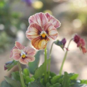 こんばんは😊 いつも行くお店のオリジナルビオラ(見元さんとコラボ)の寄せ植えです☺️ 淡い優しい色合いがとっても可愛いです☺️🌸