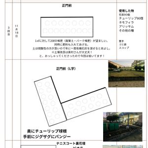 【2024.12.17】 テニスコート前の花壇その① こちらは、割と元気なお花達です。 ③のところは足跡が付いていて、子供が踏んづけたのでしょう…😅 何か、注意書きは必要なのでしょうか?? いや、お花がいっぱい咲いてたら、踏まないはず!!! 寂しい花壇をなんとかせねば。 11月に蒔いた花の種の芽が少し出ていて可愛かったです🌱 撒くのが遅かったのでうまく育ってくれるかは心配です😞 こちらは、 後々、宿根草などでほったらかし植物も混ぜつつ管理を楽にしたいなと思っているエリアです。 卒業生が通る通路でもあるので、 お花を溢れさせたいところ。 何から着手したらええもんか・・・😒😒😒 3月10ごろまでに花盛りになるお花はなんでしょうか??? 一旦、かわいいタネタネちゃん達がどうなるか見届けてから、その後を考えたいです。 もちろん、アイデア募集中です!! ----------------------------🌼 初めまして。ななコダです。 中学男子のオカンです。 助けてください! 中学校のPTAの仕事で花壇の植替えを担当してます。お花は好きですが、知識は広く浅くレベルです。 あと2年の間でみすぼらしい中学の花壇を綺麗なお花いっぱいの花壇に生まれ変わらせたいです!! どうか、皆様の知恵を貸していただけませんでしょうか!?宜しくお願い致します。 活動は6月と11月の年に2回〜3回程度。 卒業生を見送るために3月にお花がたくさん咲いているのが希望。 予算は数万円。 日々の管理は用務員さんと、支援学級の子達が水やりをしてくれてます。(完璧な管理ではありません。) 今までは2024.6月にペチュニア 11月にパンジービオラ合わせて 90株とチューリップを植えました。 何も無いところにワイルドフラワーの種、ネモフィラ、アリッサム等の種も蒔きましたがうまくいくかは不安です。 現状はとっても寂しい花壇です。 あと2年の間に、 お金はあまりかけずに宿根草や多年草などを組み合わせたりほったらかしの植物をいれつつ素敵な花壇にしたいです! どうかお力添えの程宜しくお願い致します!!!!