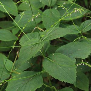 ♪ G o T o 東京 キャンペーン♪ <青梅・御岳山> ハエドクソウ レンゲショウマ観察中、視線をずらすと、細長い茎に小さな花が… ん?ハエドクソウ? イヤ確か、ナガバハエドクソウもあったな🤔 という事で、pic撮って、葉っぱを確認するはずが、見ての通り、背景に写るのは、全てレンゲショウマの葉🌿 あか〜ん😱 ん〜っと… 草丈30センチ弱。丸みのある花弁に 肩状の張り出しがあるので、ハエドクソウと判断。 クレーム絶賛受付中でーす🥳(コラっ)