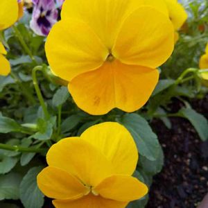 今朝の庭 今日は1日雨☔ 本降りになる前によく咲くスミレちゃん yellow powerで気分アップ🎶🎶