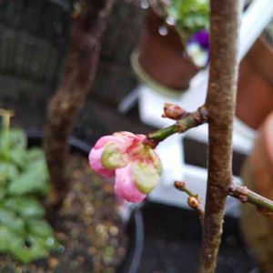 庭の鉢植えの枝垂れ梅1輪咲きました💕