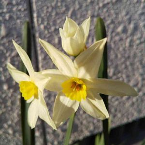 今朝の庭 初水仙の花やっと開いた🎶🎶