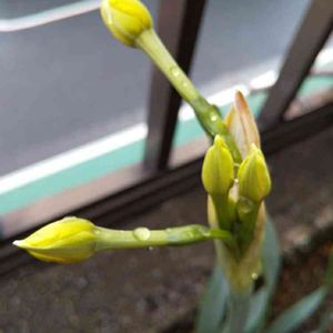 庭で初めて見るお花🌼 🔍するとキルタンサス 植えた記憶ないのだど 冬の庭を飾ってくれてありがとう💕🎶