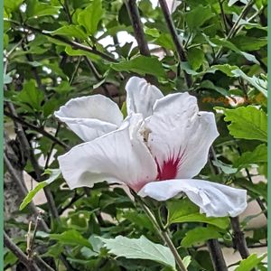 遊歩道沿いで見られるムクゲ(白色) 横浜市青葉区内 2023年6月10日撮影 (他へも投稿㊥) Google Pixel 5a使用