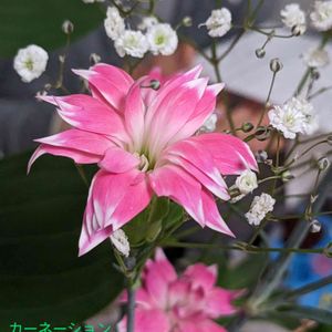 切り花 八重咲きカーネーション と カスミソウ 2023年5月9日撮影