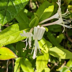 3月に購入したスイカズラ、ハニーサックルの苗、今年はお花咲かないかな〜と思っていたら咲きました😆🤍 とってもいい香りがします( ´͈ ᵕ `͈ )♡ スイカズラの別名、金銀花 花色が白から黄色っぽく変化することからこの名がつきました。白は銀、黄色は金で言い表します。 そこで🏷GSオノマトペ ♫ギンギラギンにさりげなく〜咲いてるスイカズラです☺️