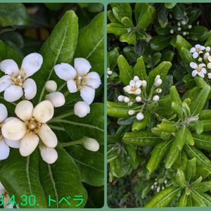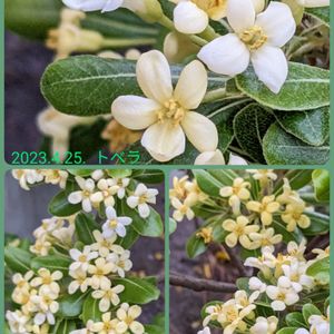 トベラ咲いていました‼️ アパート近くにある🏪コンビニ セブン-イレブンそばの花壇にて。 2023年4月25日横浜市青葉区内で撮影