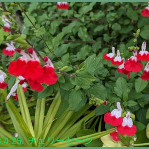 チェリーセージ (サルビアミクロフィラ) と言うらしい。 横浜市青葉区内の住宅街にて。 2023年4月25日撮影
