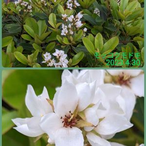 白花のモッコクモドキ シャリンバイとは、違う感じですね😁 横浜市青葉区の遊歩道沿いの花壇にて。 2023年4月30日撮影