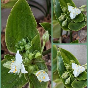 白色のトキワツユクサ (常磐露草) アパート敷地内、隣の隣の軒下で咲いていました😆😁 ツユクサ科 ムラサキツユクサ属 2023年4月14日撮影