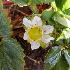 🍓イチゴ🍓の花がさきました。 去年は葉っぱばかり大きくなって😢 今年はいい感じと思います
