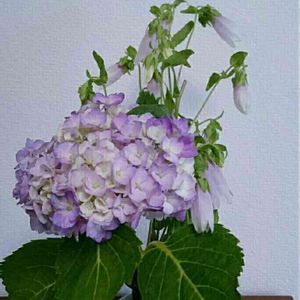 紫陽花とヤマホタルブクロ。 季節のお花です。 淡い紫。良い色ですね。
