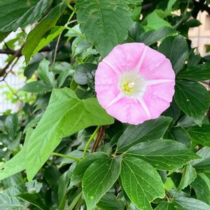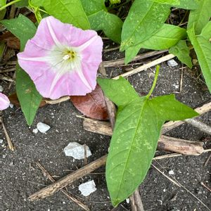 おはようございます☺ コヒルガオ🌸🌿 通勤道にヒルガオがまだ咲いてます☺ 薄いピンク💗が野草らしい😍 よく見ると葉🌿の耳のとこがぺこっと凹んでます。 へこんでるのは コヒルガオと載ってました.。o○ 間違えなら教えて下さい😊