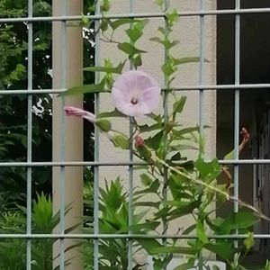 散歩中に発見。薄いピンク色の花が咲いたコヒルガオです。 この前見たものは、もう少し白っぽかったです。