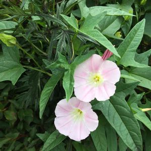 コヒルガオが咲いていました。 淡いピンク色が可愛い〜ですね。