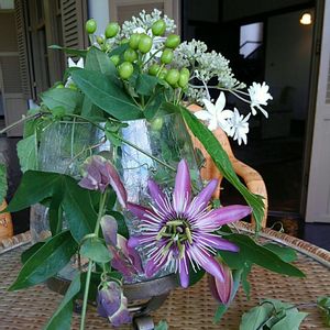 横浜異人館・外交官の家 3 GS で教えていただいたトケイソウ サンルームのテーブルの上のフラワーアレンジ 今日初めて実物を見ることができました🎶✨