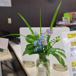 病院の生け花 残暑厳しい毎日 野山ではセンニンソウが花盛りです💠 清楚な白い花、自由奔放な枝ぶりのグリーン🌿が大好き! あちこちに飾りました💠✨️