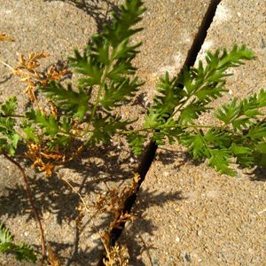 玄関前のコンクリートのスキマから 綺麗で可愛い葉っぱ🌿。 AIに依りますと[カニクサ] 無限成長の厄介な雑草らしい。 早く駆除しなくては…では抜きます。でも根を取り切れないと再成長、結局除草剤が良いらしい。トサ、、