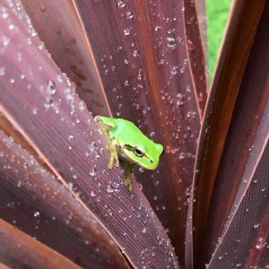 コルジリネの中にカエルさん見つけた🐸 まだ小さいアマガエル😆