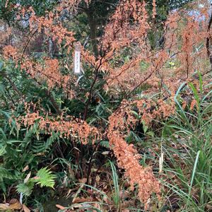 「植物多様性センター」にて… その④ 奥多摩ゾーンに、ひときわ大きな「草」。 picでは分かりづらいが、立位でスマホを構えて撮っているので、確実に2メートルは超えている。 連なり垂れ下がる、小さな果実は、翼状の3個の萼に包まれ、さながら簪(かんざし)の、藤の花のよう☺️ 職員さんの手書きの札には「イタドリ」とある。 え?あのイタドリ?😳😱 存在が当たり前すぎて、どこまで成長するか、ちゃんと見届けたことはなかったかも😰 図鑑で調べると、条件が良ければ、軽く2メートルぐらいは育つという。 記憶の中では、70センチにも満たない、“定番の草”。 子供の頃、丈が短くて、茎の太いものを探して手折り、皮を剥き、一口かじってみて… 「酸っぱーっ😖」 …って、言うのが、春先のお約束だった おバカ時代が懐かしい。 まさに、青春の味(笑)