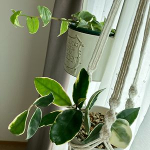 個人的におすすめなハンギング植物のペペロミアフォレットです。 ペペロミアと聞いて条件反射で購入したもののヒットでした まず葉がしっかりなおかつザラザラしてて丈夫、柄も綺麗、茎もハリがあって動きも出ます。 管理も楽で水切れにも強いし本当に育てやすい! 写真より実物の方がずっと素敵です♡