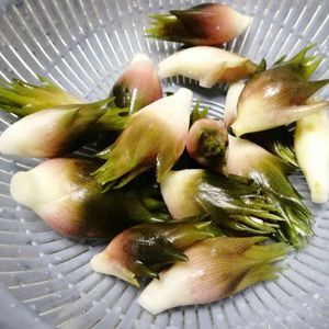 初めてのみようが。 売られてる物より、色も大きさも違うけど、天ぷら、甘酢漬け、千切り(冷凍用)にしました。