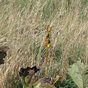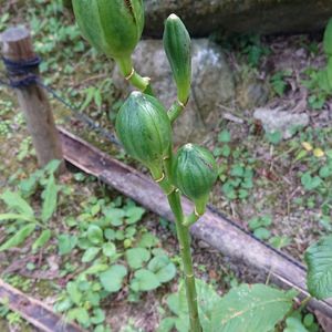 こんにちは😉クルミの木の下で咲いていたウバユリの実です😊セミの脱け殻が😁